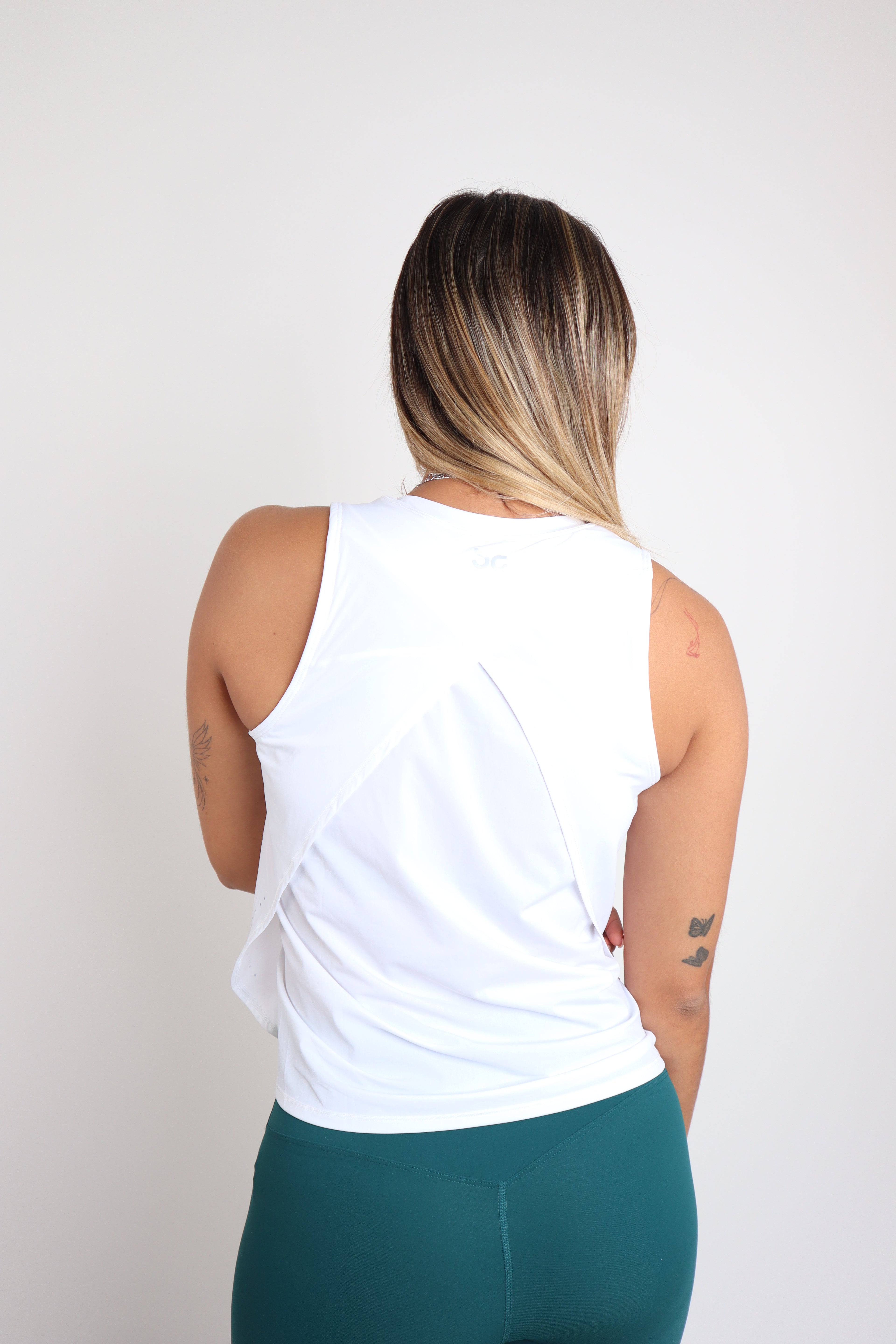 Tank top de diseño limpio con sutiles detalles dorados que elevan tu look deportivo con un toque elegante y femenino.